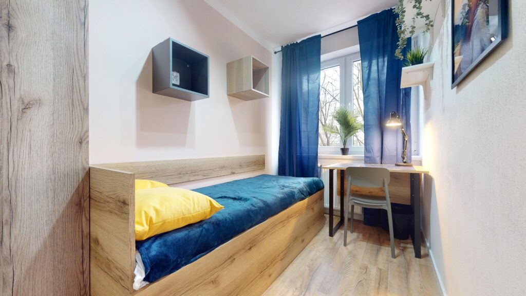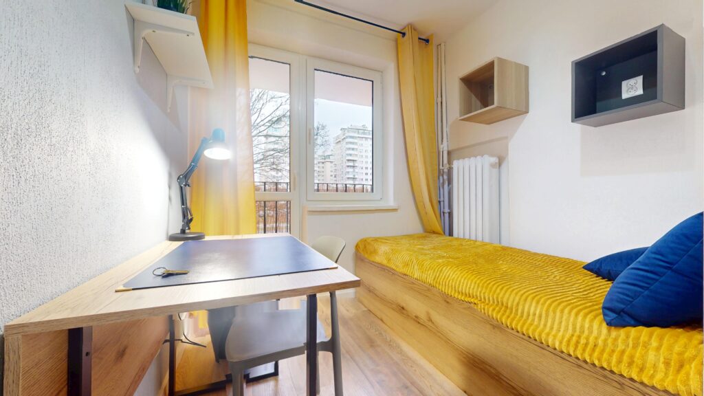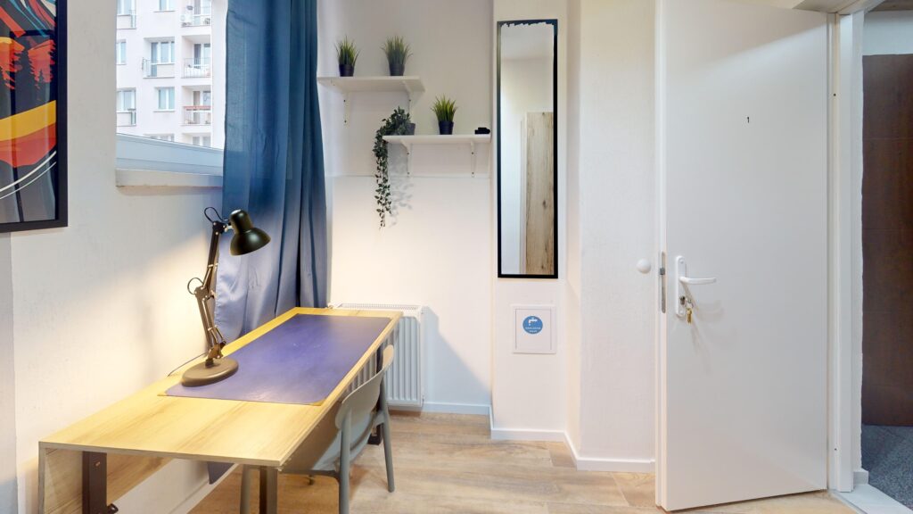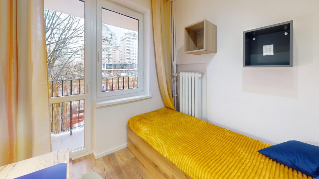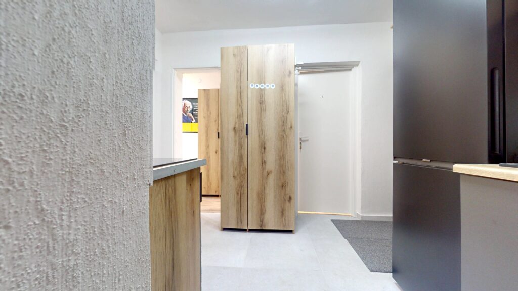 Mieszkanie na ulicy Okopowej 20 na Woli. Dostępny wirtualny spacer – w mieszkaniu zastosowaliśmy elementy “smart” – czujniki wilgoci, temperatury oraz zalania, elektroniczną klamkę wejściową. Mieszkanie zaadaptowane na 5 pokoi jednoosobowych.