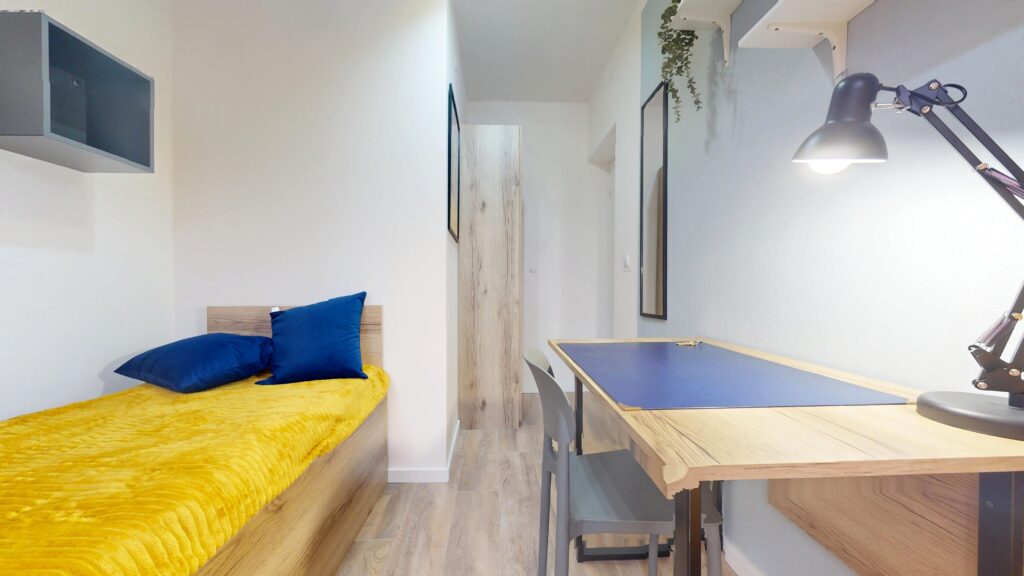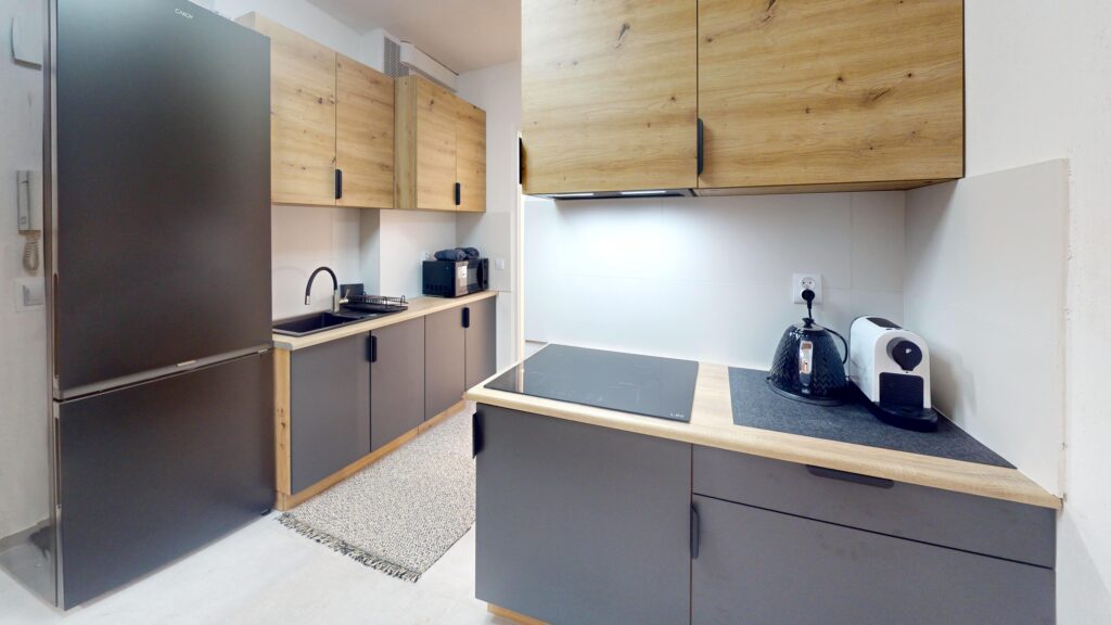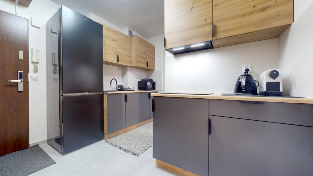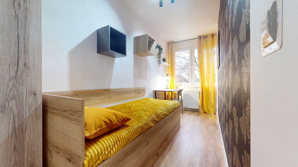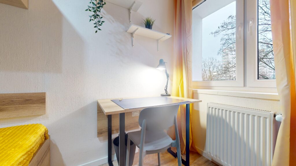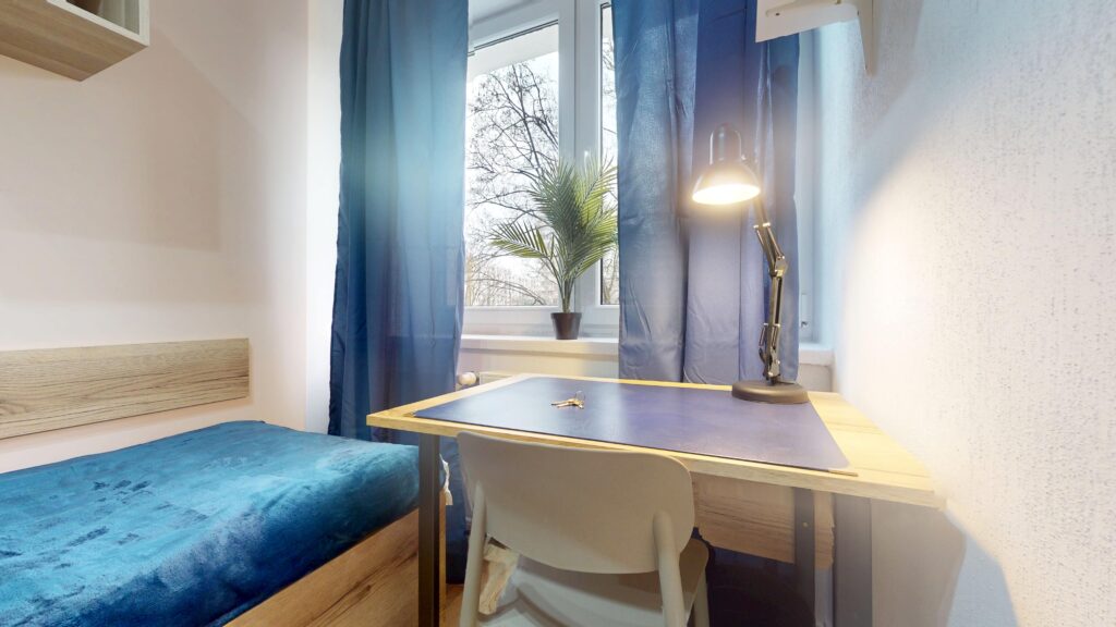 Mieszkanie na ulicy Okopowej 20 na Woli. Dostępny wirtualny spacer – w mieszkaniu zastosowaliśmy elementy “smart” – czujniki wilgoci, temperatury oraz zalania, elektroniczną klamkę wejściową. Mieszkanie zaadaptowane na 5 pokoi jednoosobowych.